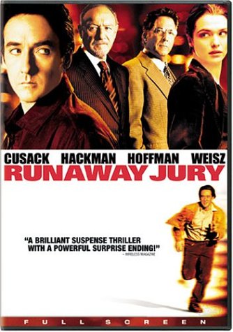 Based on the bestseller by John Grisham, Runaway Jury is a slick thriller that's exciting enough to overcome the gaps in its plot. The ultimate target has been changed: Grisham's legal assault on the tobacco industry was switched to the hot-button issue of gun control (no doubt to avoid comparison to The Insider) in a riveting exposé of jury-tampering. Gene Hackman plays the ultra-cynical, utterly unscrupulous pawn of the gun-makers, using an expert staff and advanced electronics to hand-pick a New Orleans jury that will return a favorable verdict; Dustin Hoffman (making his first screen appearance with real-life former roommate Hackman) defends the grieving widow of a gun-shooting victim with idealistic zeal, while maverick juror John Cusack and accomplice Rachel Weisz play both ends against the middle in a personal quest to hold gun-makers accountable. It's riveting stuff, even when it's obvious that Grisham and director Gary Fleder have glossed over any details that would unravel the plot's intricate design. --Jeff Shannon